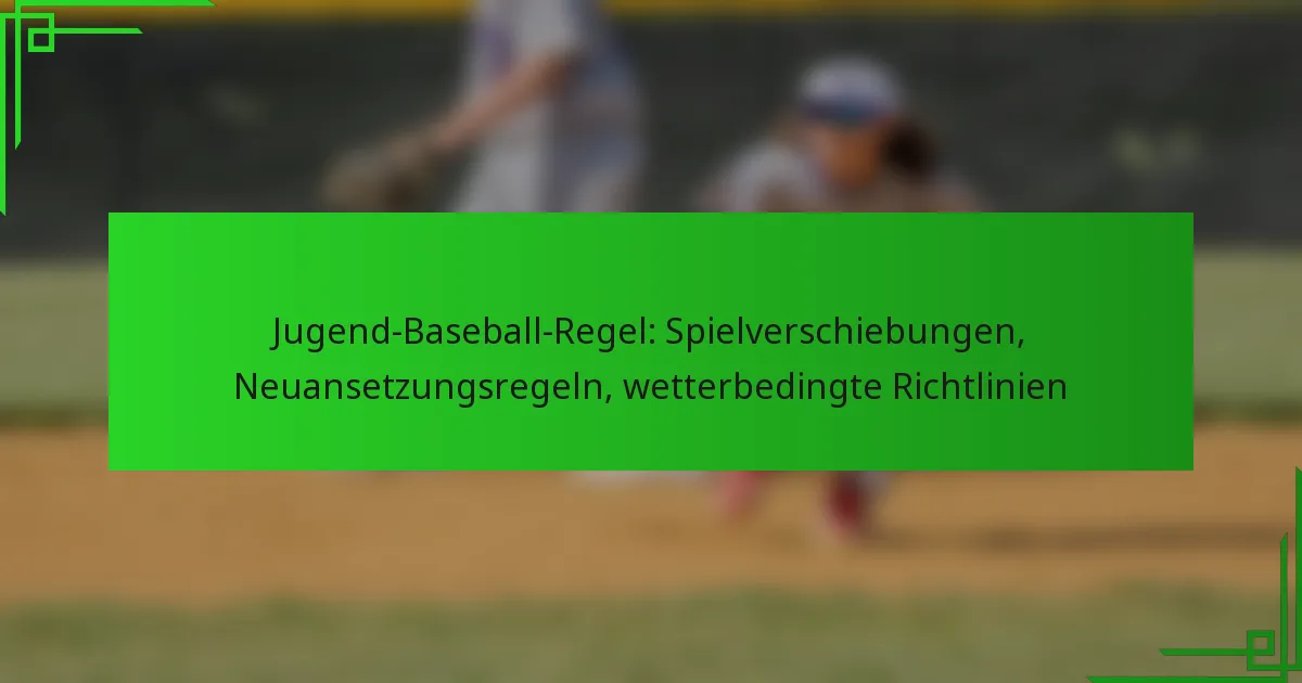 Im Jugendbaseball werden Spielverschiebungen hauptsächlich durch Regeln geregelt, die darauf abzielen, die Sicherheit der Spieler und einen fairen Wettbewerb zu priorisieren. Verschiedene Faktoren, wie Wetter- und Platzbedingungen, können zu Verschiebungen führen, was klare Verfahren für die Neuplanung erforderlich macht, die die Kommunikation zwischen Ligabeamten, Eltern und Spielern einbeziehen. Vertrautheit mit wetterbezogenen Richtlinien ist für die…